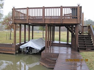 Docks for boats and jet skis are a specialty of ours. We can do most kinds of lifts and cover your boat with low profile cover.